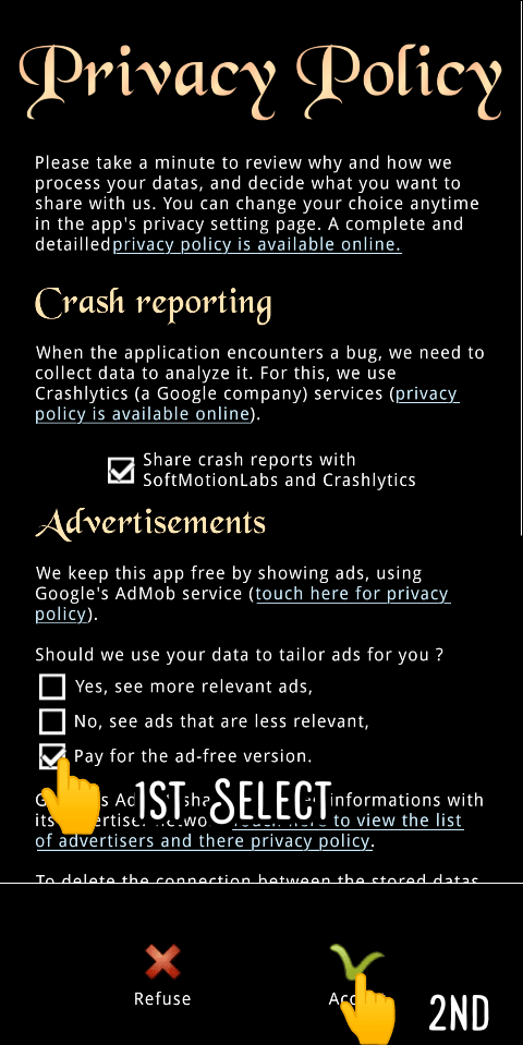 - 1st Select the option “Pay for the ad-free version” then tap Accept